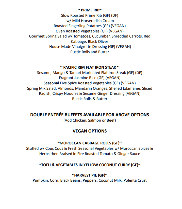 Please specify vegetarian or vegan when requesting catering on items from this menu.