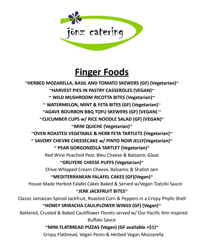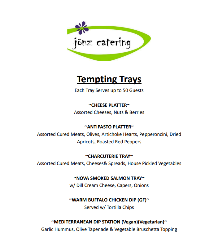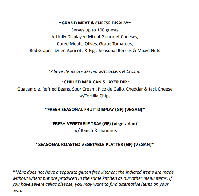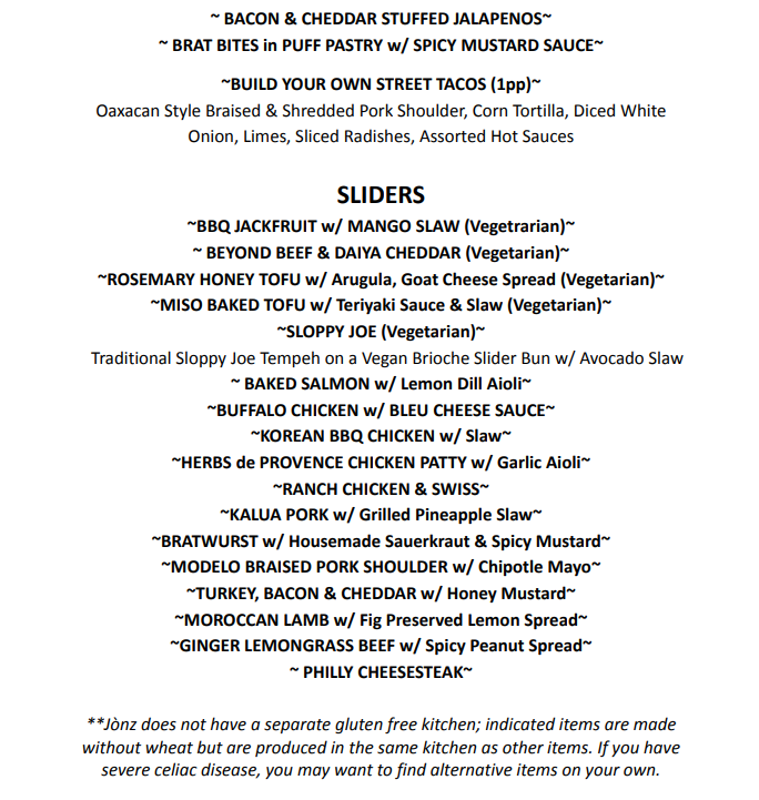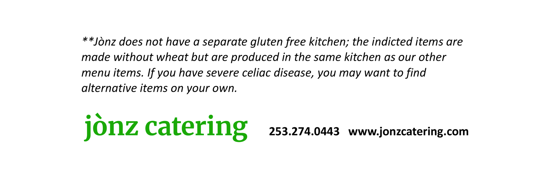 You can customize your catering menu by substituting ingredients and items while you request catering with Jònz. Please let us know if you have any special dietary needs.