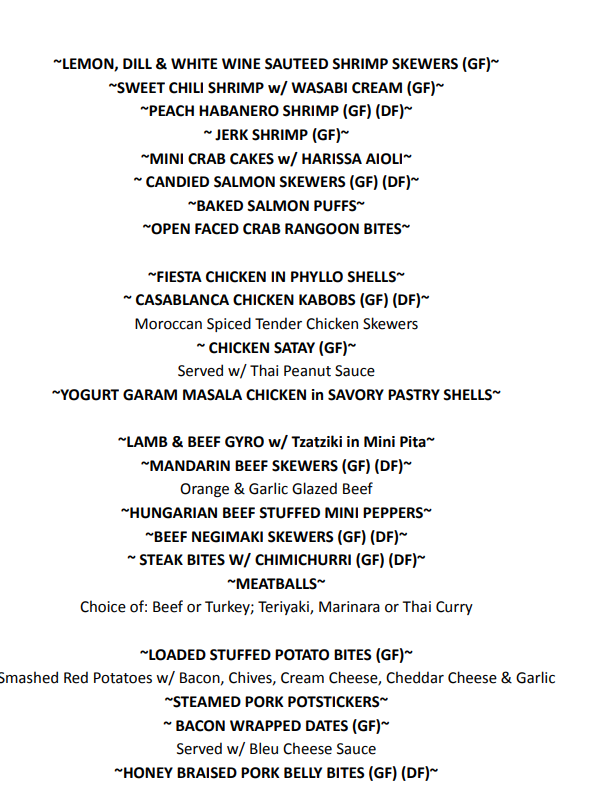 Jònz Catering invites you to explore our exquisite buffet menu offerings, perfect for any event. From our tender rosemary chicken and naked chicken parm, to our succulent wild caught cod and sweet soy glazed salmon, every dish is crafted to delight. We also cater to dietary needs with gluten-free offerings. Ready to elevate your next event with Jònz Catering's exceptional service and mouthwatering specialties? Call us today to discuss your catering needs.